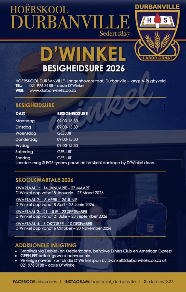 KLEREWINKEL IS GESLUIT OP WOENSDAE